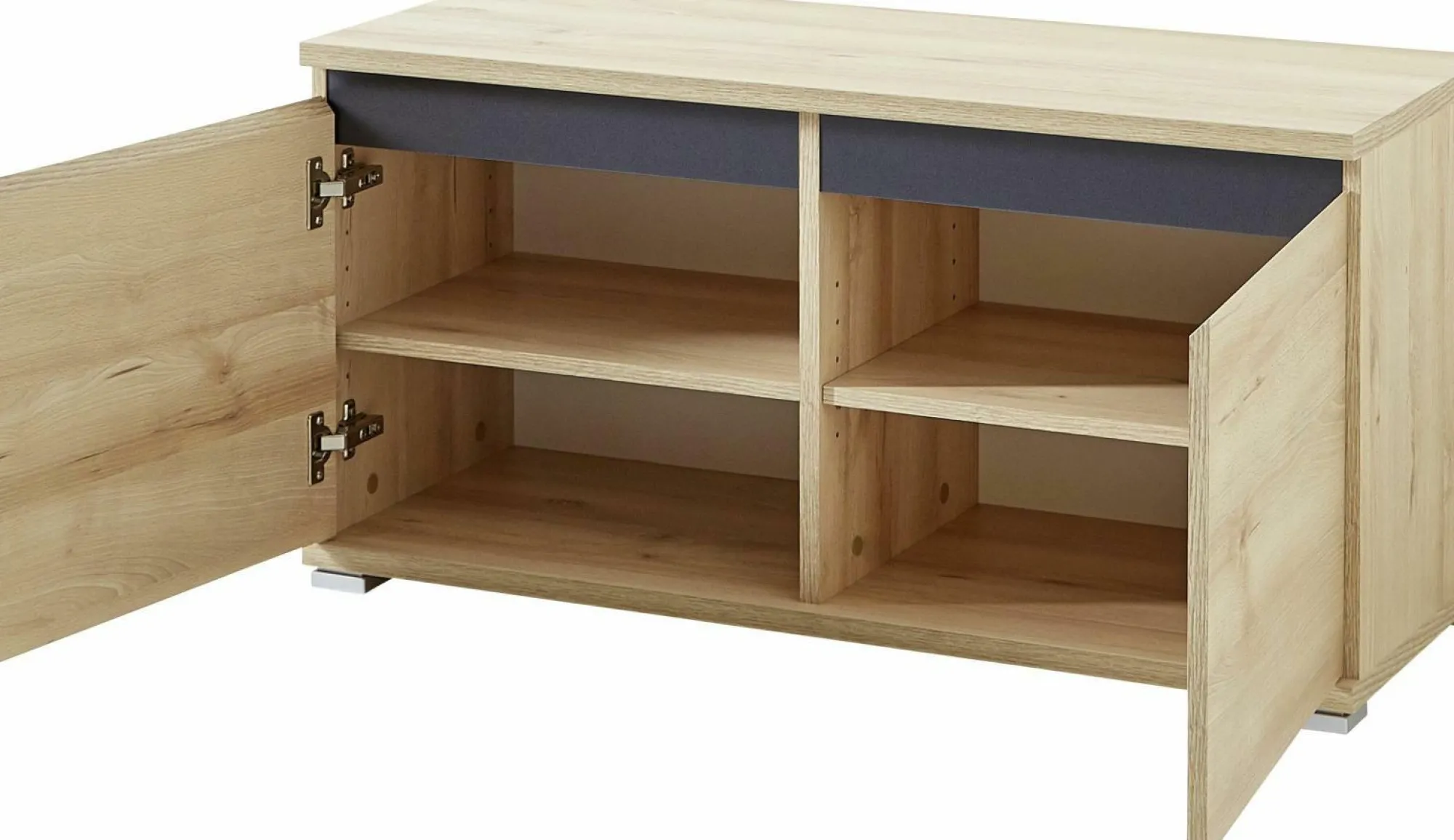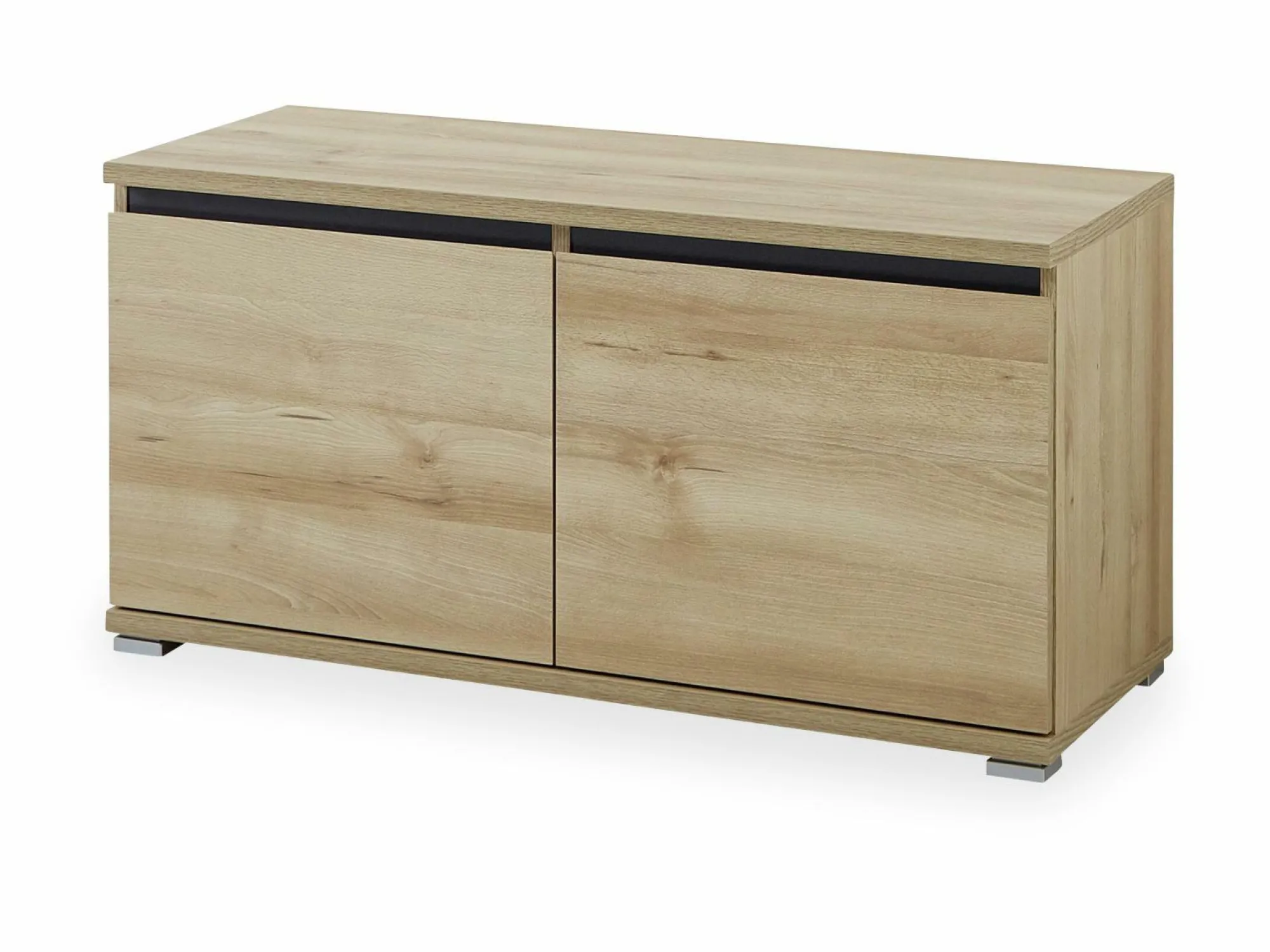 · Schuhbank mit zwei Türen, jeweils ein verstellbarer Einlegeboden (belastbar bis zu 10 kg), Oberboden kurzfristig belastbar bis zu 90 kg, Unterboden belastbar bis zu 20 kg, Edelbuche-Nb. mit Applikationen im Dekor Anthrazit, vier eckige Kunststofffüße, Türdämpfung, hochwertige ABS-Kanten, griffloses Design, Platz für ca. 8 Paar Schuhe, Made in Germany.