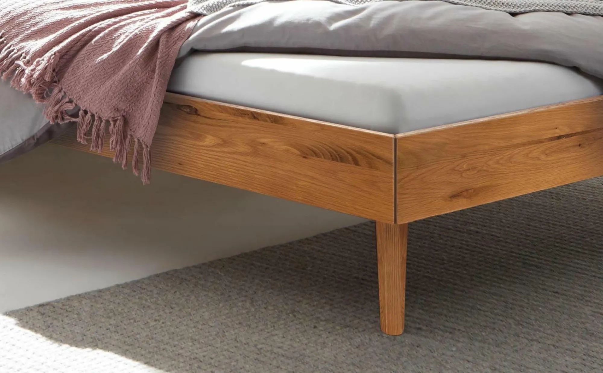 · Simone besticht durch die zwischen Massivholz und Polster. Die Holzblenden am Kopfteil nehmen die natürliche Eleganz der Bettfüsse auf. Bei diesem mit Handwerk gefertigten Bett sind es auch die Details, die den Unterschied ausmachen. Der einfache Aufbau des Bettgestells lässt sich unzählige Male wiederholen, Kraft und Stabilität bleiben erhalten.