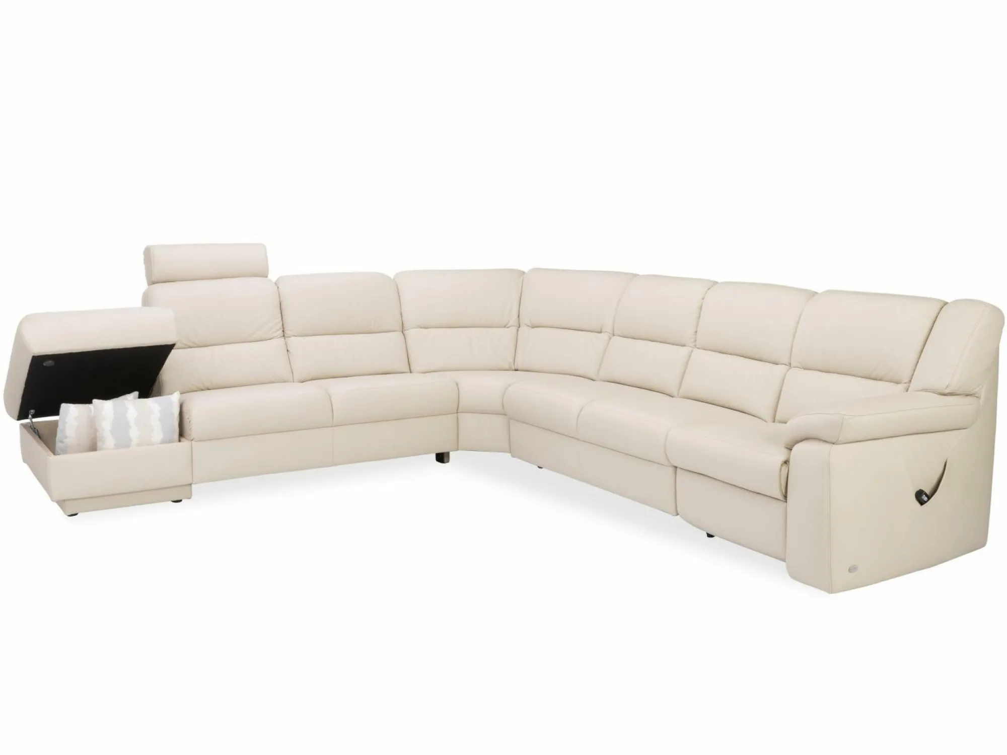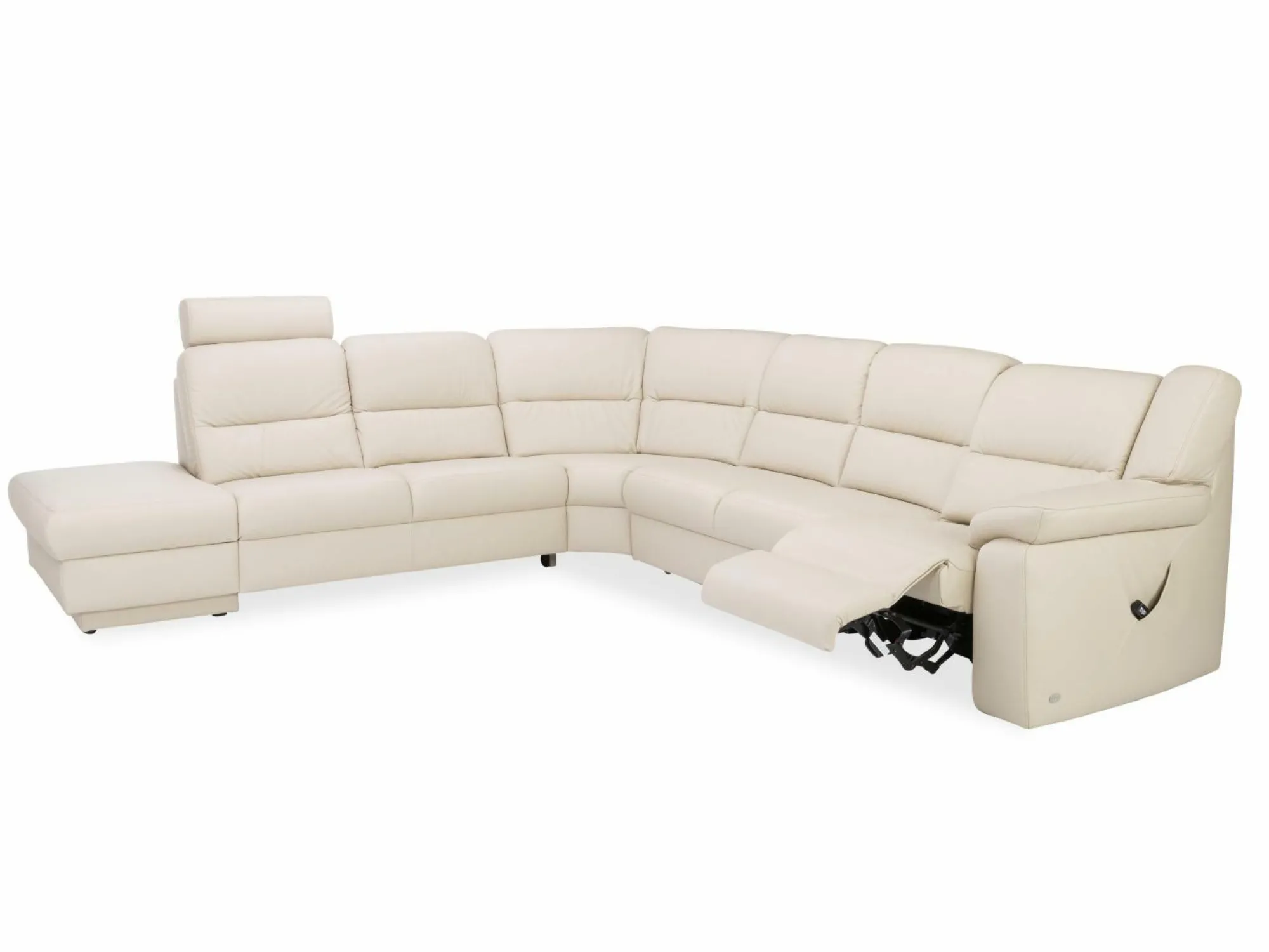 Platz für die ganze Familie und Freunde bietet die Polsterecke 1112 von Himolla Polstermöbel. Bezogen mit echtem Leder im Stil Longlife Marmor, präsentiert diese Sitzgelegenheit ein besonders edles Design. Die großzügige Polsterecke besteht aus einem offenen Abschlussteil, einem vorstehenden Hocker, der links aufklappbar ist, einem Eckteil mit Pendolin, einem 2-sitzigen Sofa und aus einem rechts vorstehenden Abschlusselement mit elektrischer Cumuly-Funktion, wodurch Sie Ihre Füße ganz bequem hochlegen können. Bester Sitzkomfort wird einerseits durch den Superlastic plus Sitz und andererseits durch die Sitzhöhe von 45 cm gewährleistet – hier können Sie stundenlang bequem sitzen. Diese Couch sieht also nicht nur super schick aus, sie besitzt auch noch besondere Funktionen, die Sie im Alltag unterstützen werden. Kissen sind bei dieser Couch nicht im Lieferumfang enthalten.