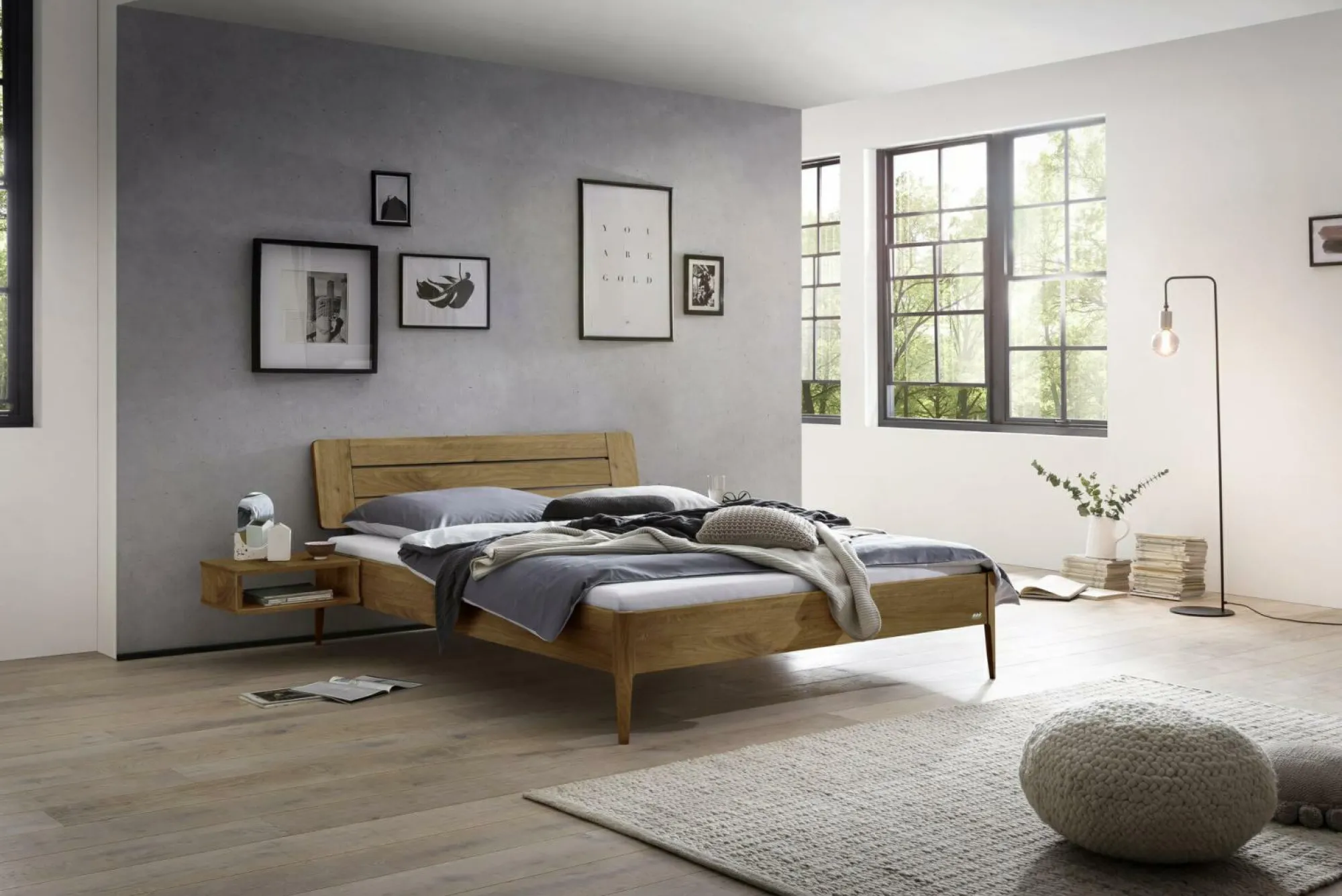 · Für Minimalisten und Überflieger ? Der Nachttisch «Seva» bietet doppelte Abstellfläche ohne viel Raum einzunehmen. Am Bettrahmen montiert, wirken Nachttisch und Bett wie aus einem Guss und verleihen jedem Schlafzimmer einen luftigen Look.