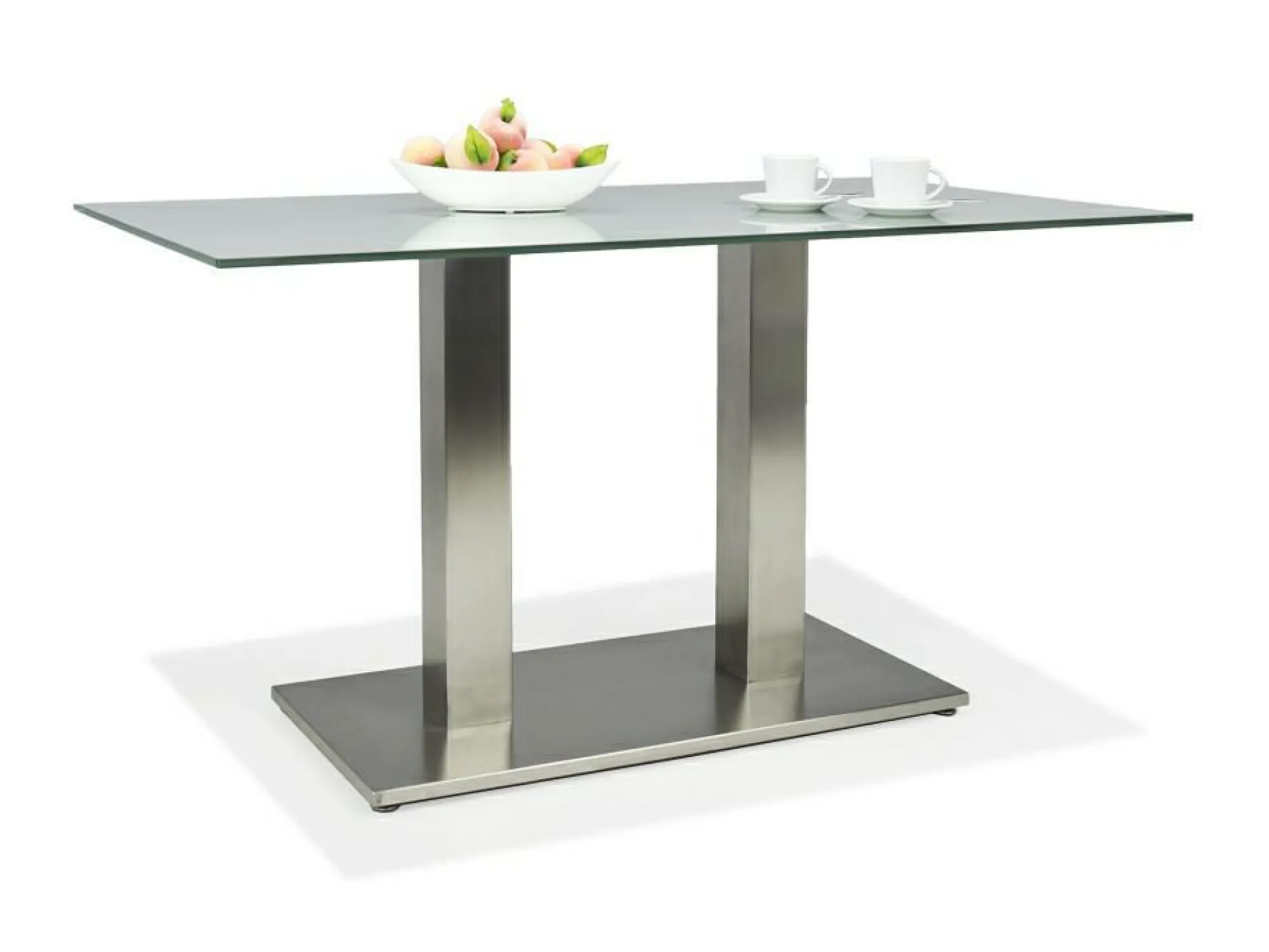 Der schicke Tisch steht auf einem Gestell aus Edelstahl. Dieses besteht aus einer Bodenplatte und zwei Tischsäulen. Das Gestell trägt die rechteckige Tischplatte aus grauem Glas. Ein stilvolles Design, das moderne Einrichtungsstile wunderbar ergänzt.Wahlweise ist die Tischplatte aus Glas auch in den Ausführungen grau oder mit Holz erhältlich.Bitte geben Sie nach Eingabe Ihrer Bestelldaten die gewünschte Glasvariante im Bemerkungsfeld an.