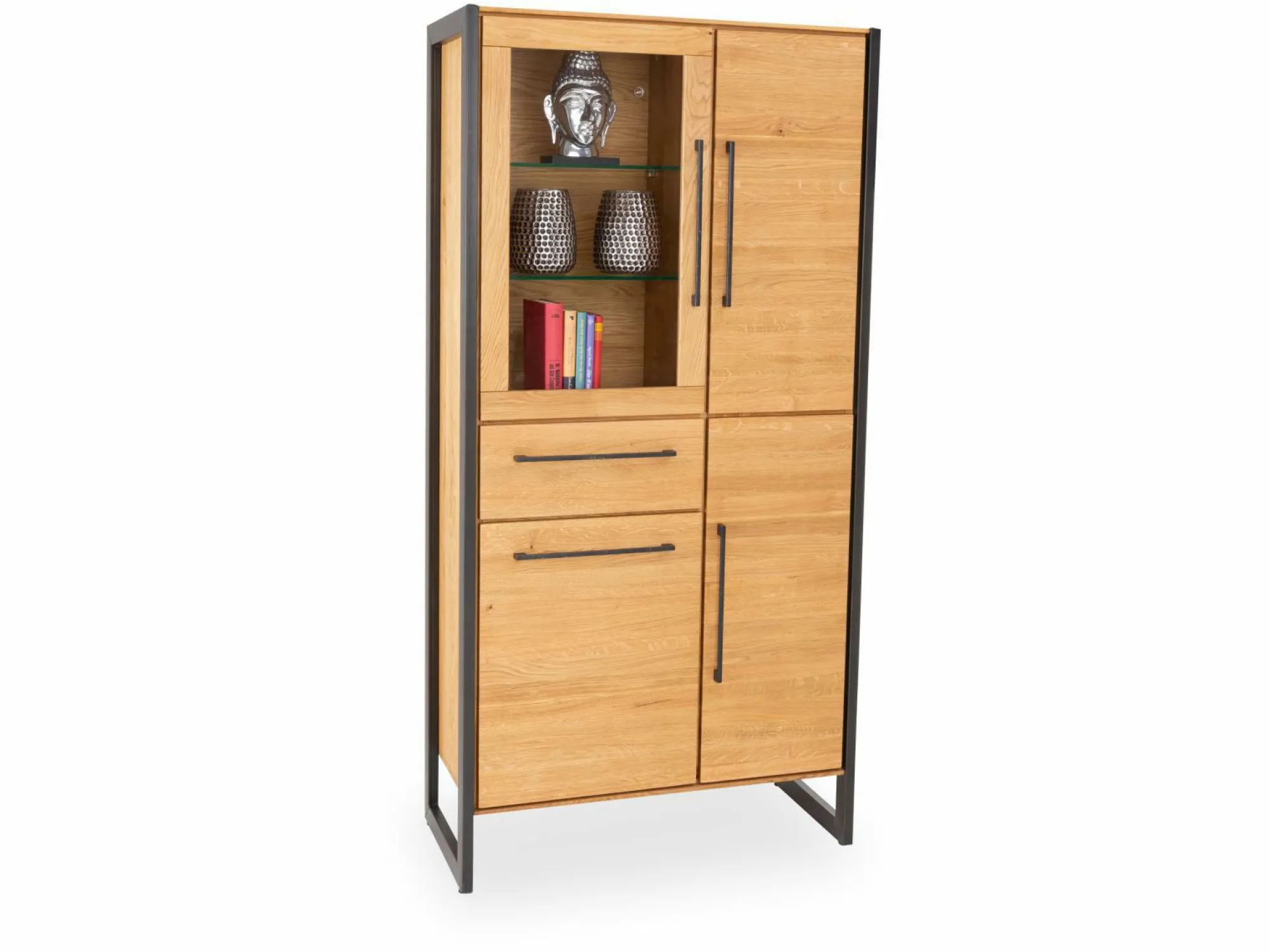 · 1 Glastür, 3 Holztüren, 1 Schubkasten, 2 Glasböden 5 Holzböden