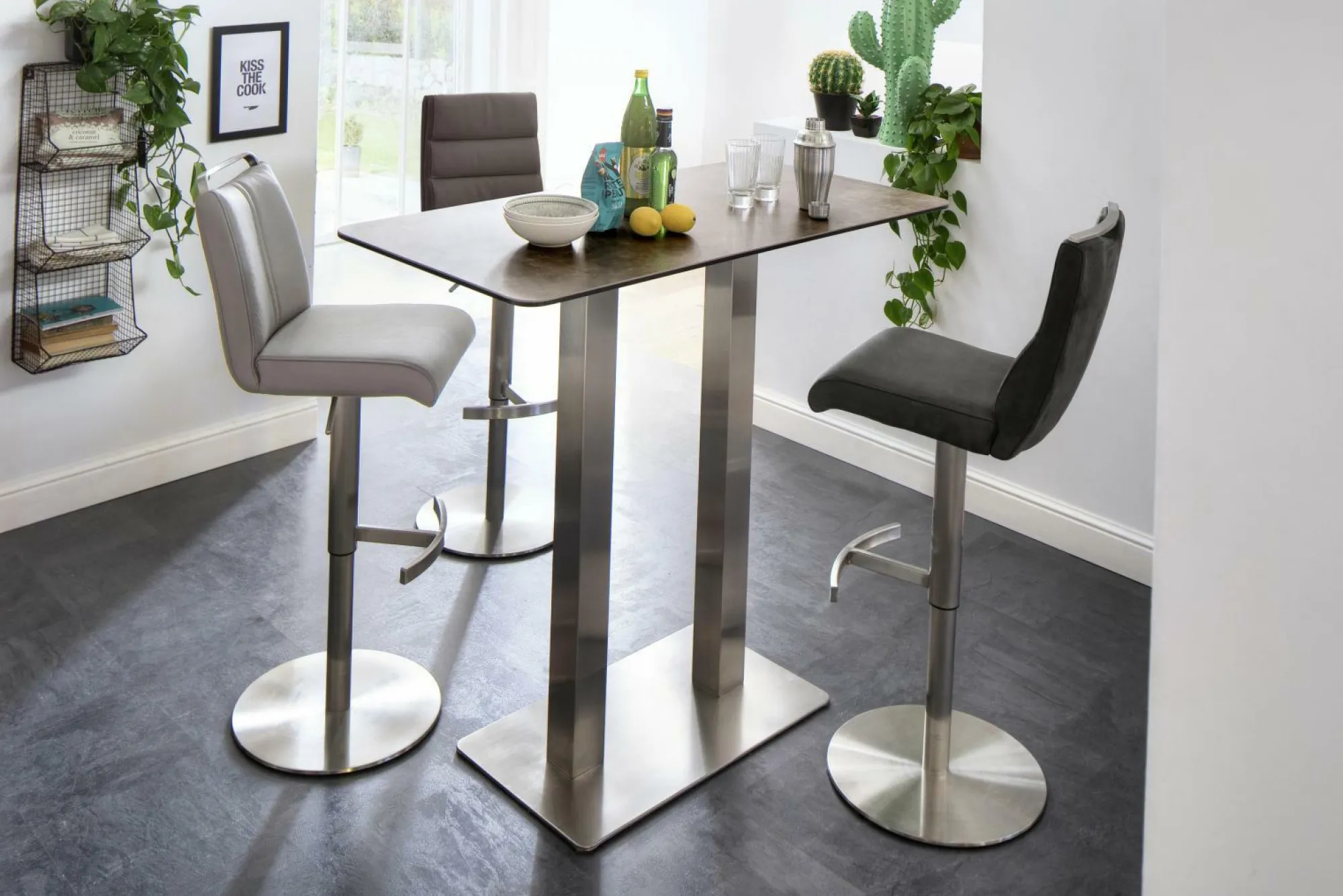 Praktisch und schick zugleich – an dem 120 cm breiten Bartisch Zarina 3 können Sie diverse Getränke ideal zubereiten. Insgesamt besteht der Tisch aus gebürstetem Edelstahl und besitzt eine Glas- bzw. Keramikplatte in der Farbe Mokka. Somit präsentiert er einen zeitlosen und modernen Stil, der in so gut wie jede Einrichtung integrierbar ist. Verwöhnen Sie Ihre Gäste mit leckeren Getränken und genießen Sie die gemeinsame Zeit!