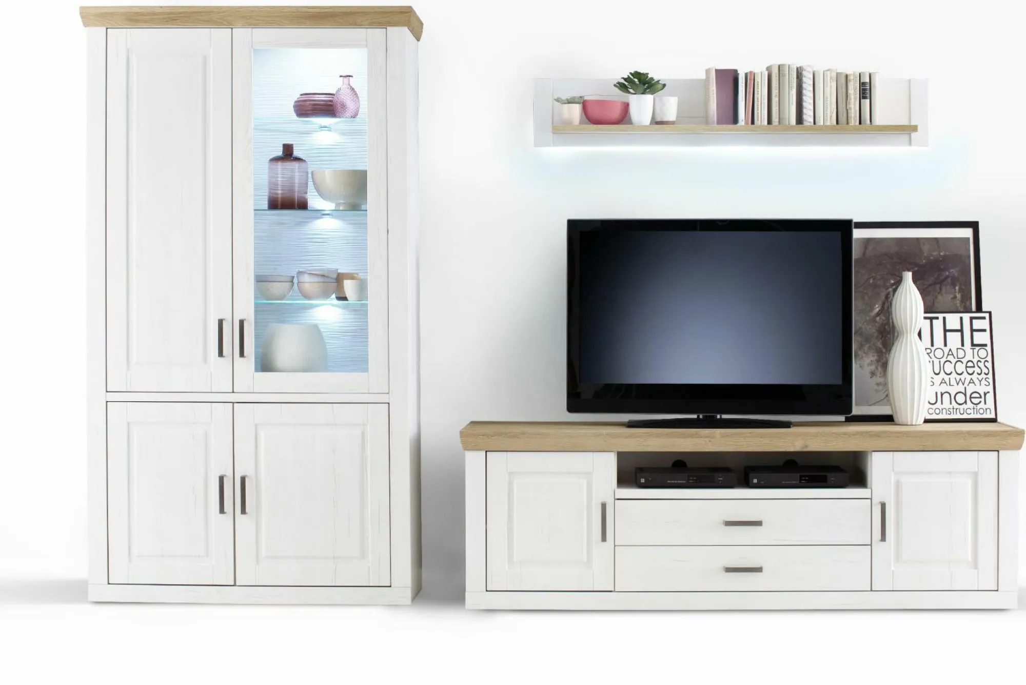 Front: Pinie Aurelio Nachbildung Schubkästen gedämpft best. aus: Vitrine, Lowboard, Wandboard >>> Preis ohne Beleuchtung <<>> Maße = ca. Montagemaße <<<, Brixen