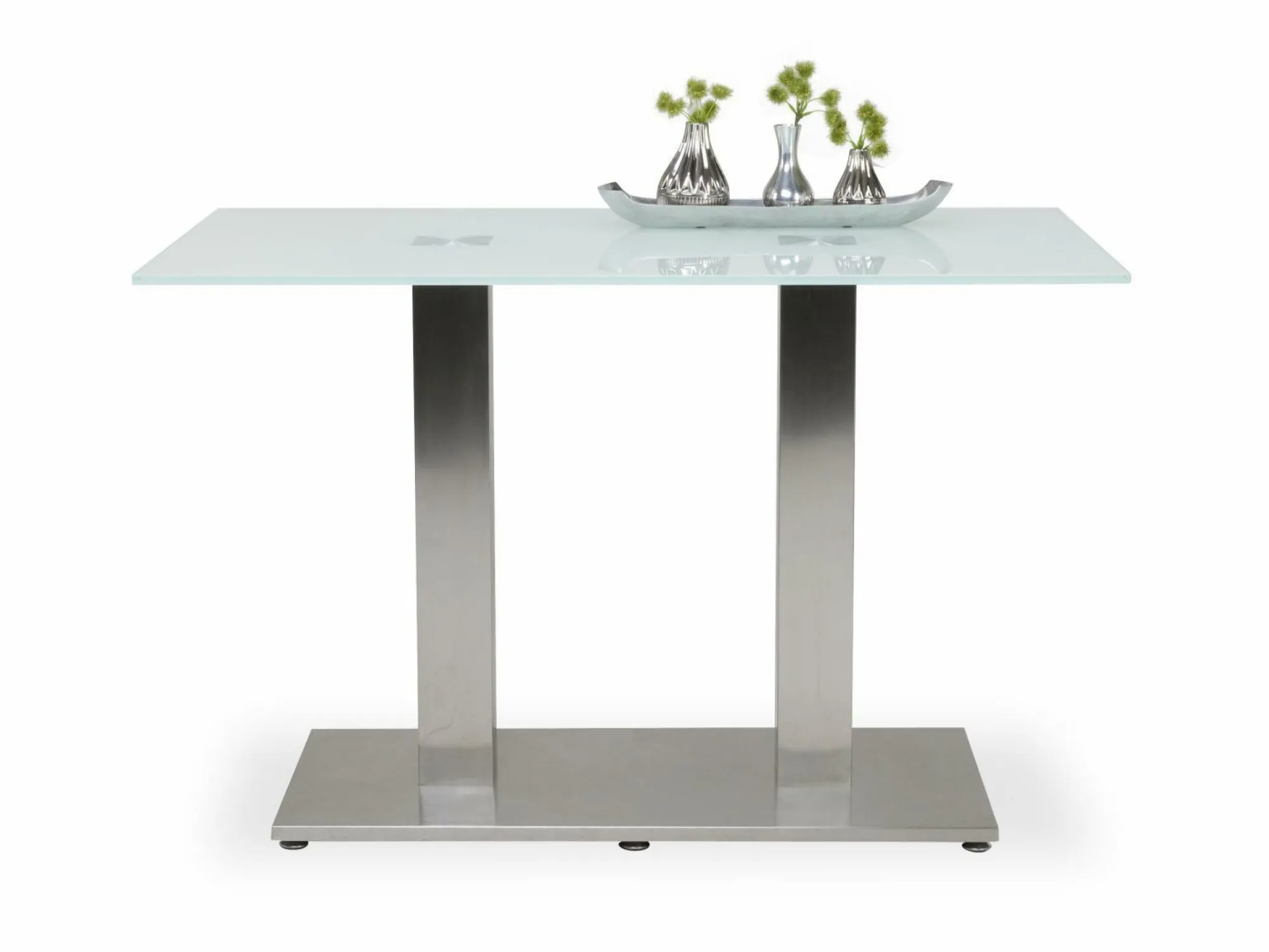 Der Esstisch Tiramo aus dem Hause Mondo glänzt mit seinem klaren Design und seiner hochwertigen Qualität. Das schlichte Design integriert sich wunderbar in nahezu jedes Wohnkonzept und ist dabei trotzdem ein kleiner Hingucker. Die Tischplatte ist aus weißem Glas gefertigt, zusammen mit den zwei Säulen und der Bodenplatte aus Edelstahl wird das klare Design perfekt abgerundet. An diesem Tisch werden Sie und Ihre Liebsten viele gemeinsame Mahlzeiten genießen können.