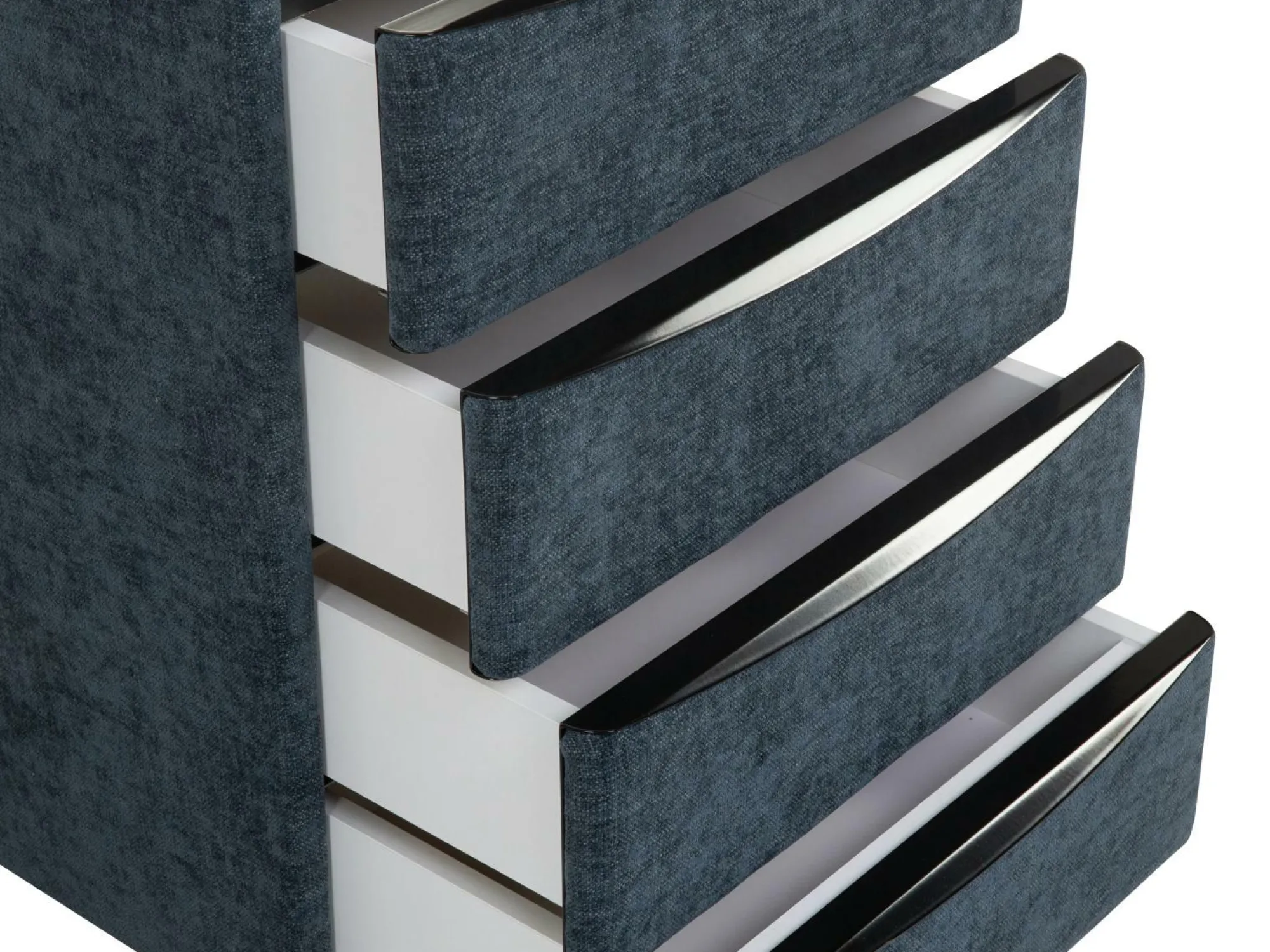 · vier Schubladen mit schwarzen Metallgriffen