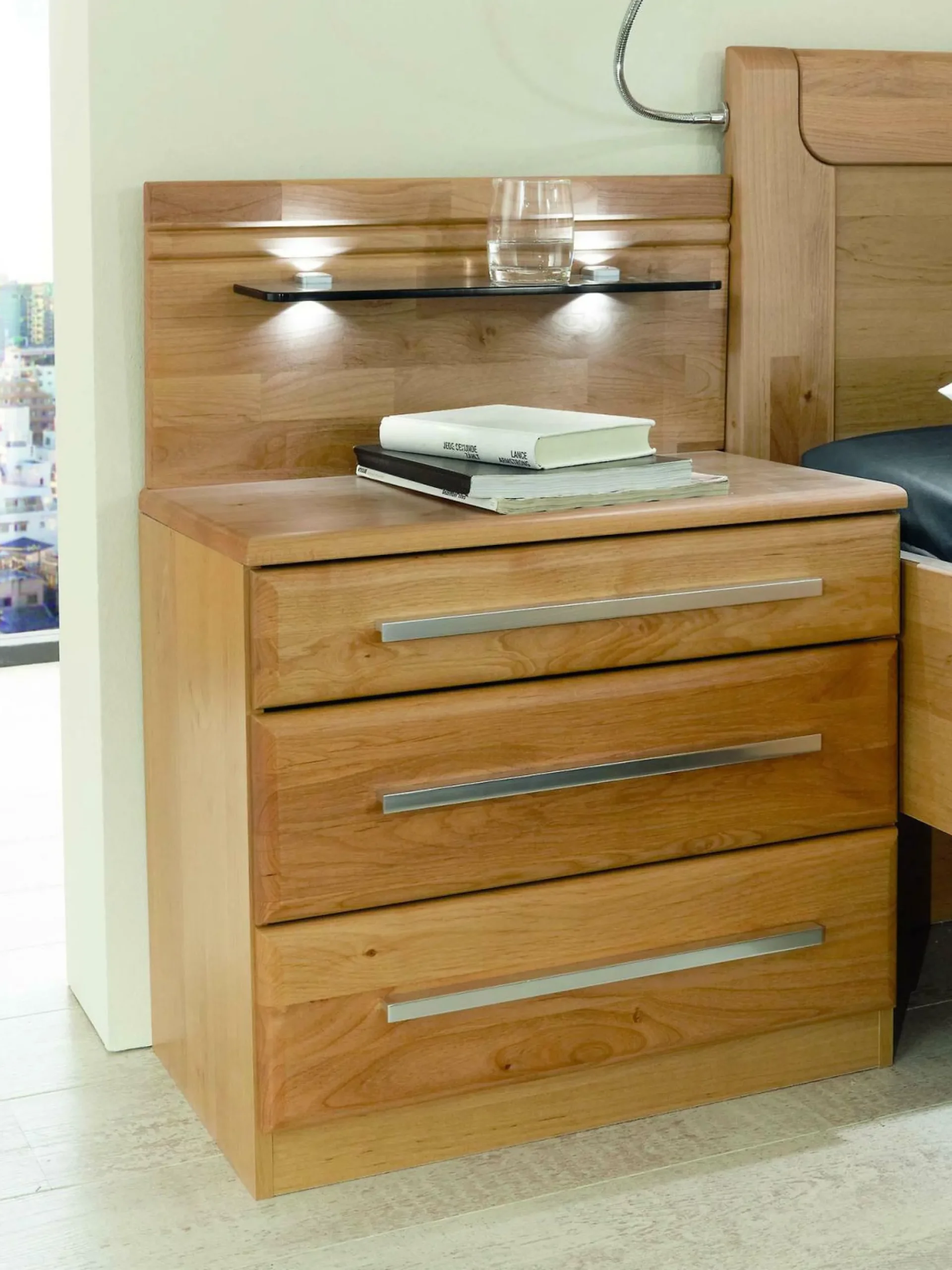 Innerhalb der beiden Nachtkonsolen befindet sich, durch die Aufteilung in je 2,5 Auszüge, viel Platz für allerhand Dinge Ihrer Wahl.Das Paneelen-Paar mit Rauchglasboden und LED-Beleuchtung ist separat erhältlich.