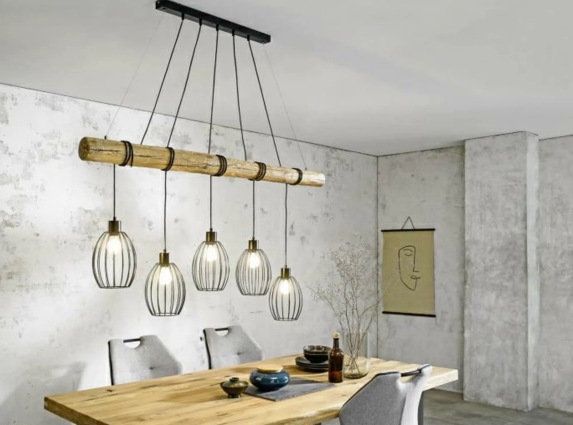 Auch in Ihrer Inneneinrichtung macht diese formschöne Pendelleuchte mit Sicherheit eine tolle Figur. Holen Sie sich mit der Hängelampe die MONDO-Markenqualität in Ihr Zuhause. Die Lampe harmoniert mit beinahe jedem Einrichtungsstil und ist durch das schöne Aussehen eine Bereicherung für Ihren Wohnraum. Sie besitzt ein Breitenmaß von insgesamt 140 cm, hat eine Länge von 17 cm und verfügt über eine Höhenabmessung von 150 cm. Die Lampe ist mit einer E27-Fassung ausgestattet. Die hervorragende Lampe stellt eine angenehme Beleuchtung sowie ein gemütliches Ambiente her und ist ein Gewinn für Ihre Einrichtung. Die Innenlampe aus Holz wird Sie erfreuen und lässt sich wirkungsvoll in viele Wohnstile integrieren. Sie besticht nicht nur mit einem schönen Lichtspiel, sondern erfüllt auch eine dekorative Funktion.