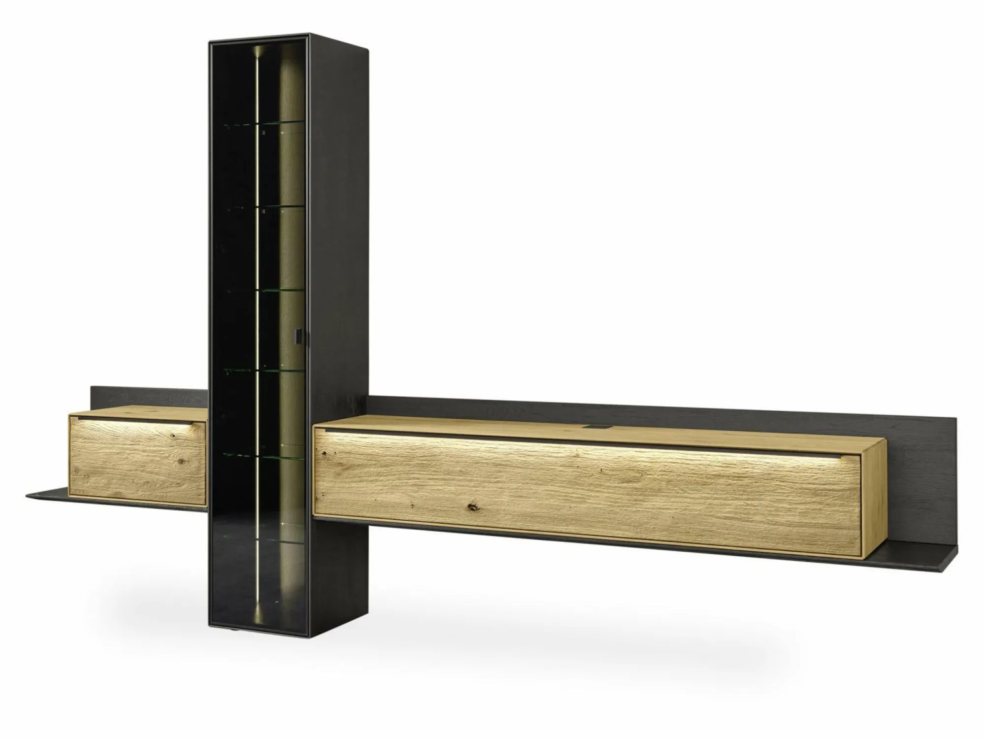 · Lowboard hängend mit Paneel und einem Schubkasten mit Akzent