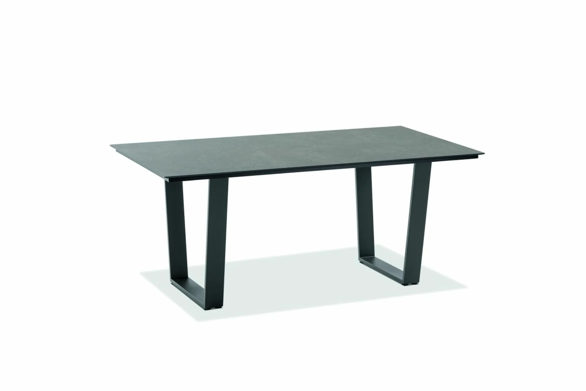 · Tisch NOAH Tischplatte HPL Beton, Gestell Trapezkufe Aluminium pulverbeschichtet, Farbton anthrazit.