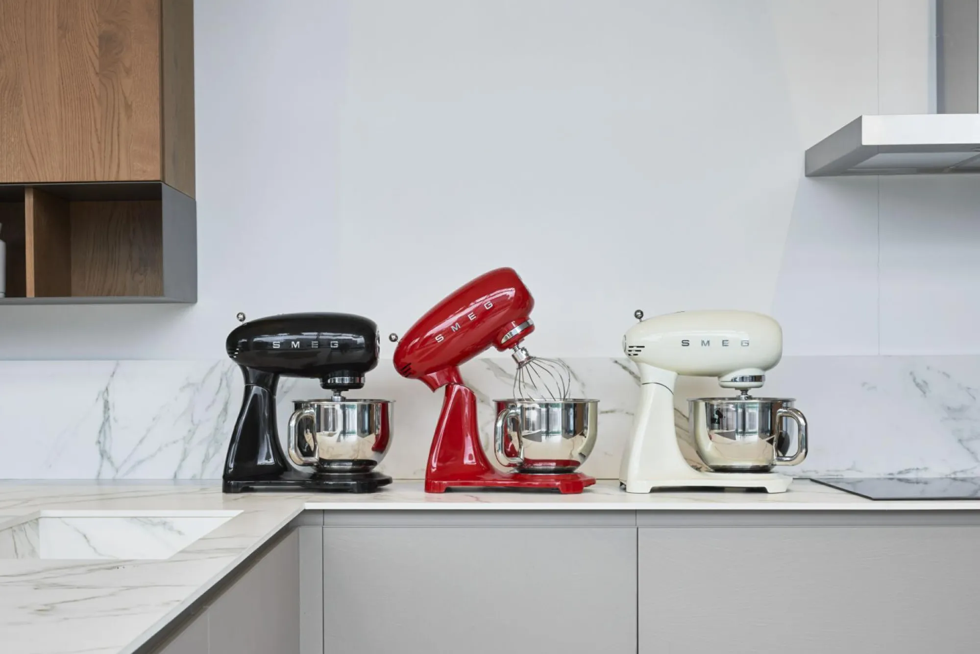 Besonders schönes Design kombiniert mit vielen Vorteilen – das verspricht die Küchenmaschine von SMEG. Sowohl durch die Farben Schwarz und Silber als auch durch die spezielle Form verkörpert die Küchenmaschine einen tollen Stil und wird zum Hingucker in jeder Küche. Durch das Planet-Rührwerk, den Direkt-Drive-Motor, zehn variable Geschwindigkeitsstufen und die rutschfesten Stellfüße werden Ihnen alltägliche Aufgaben leicht gelingen. Dank der Sicherheitsabschaltung und dem Überlastungsschutz ist die Küchenmaschine besonders sicher. Folgendes Zubehör ist inklusive: 3D-Quirl, Schneebesen, Flachrührer, Knethaken, 4,8 Liter Edelstahlschüssel und Spritzschutz-Einfüllhilfe. Beste Qualität und tolles Design – die Maschine ist ein unverzichtbarer Küchenhelfer!