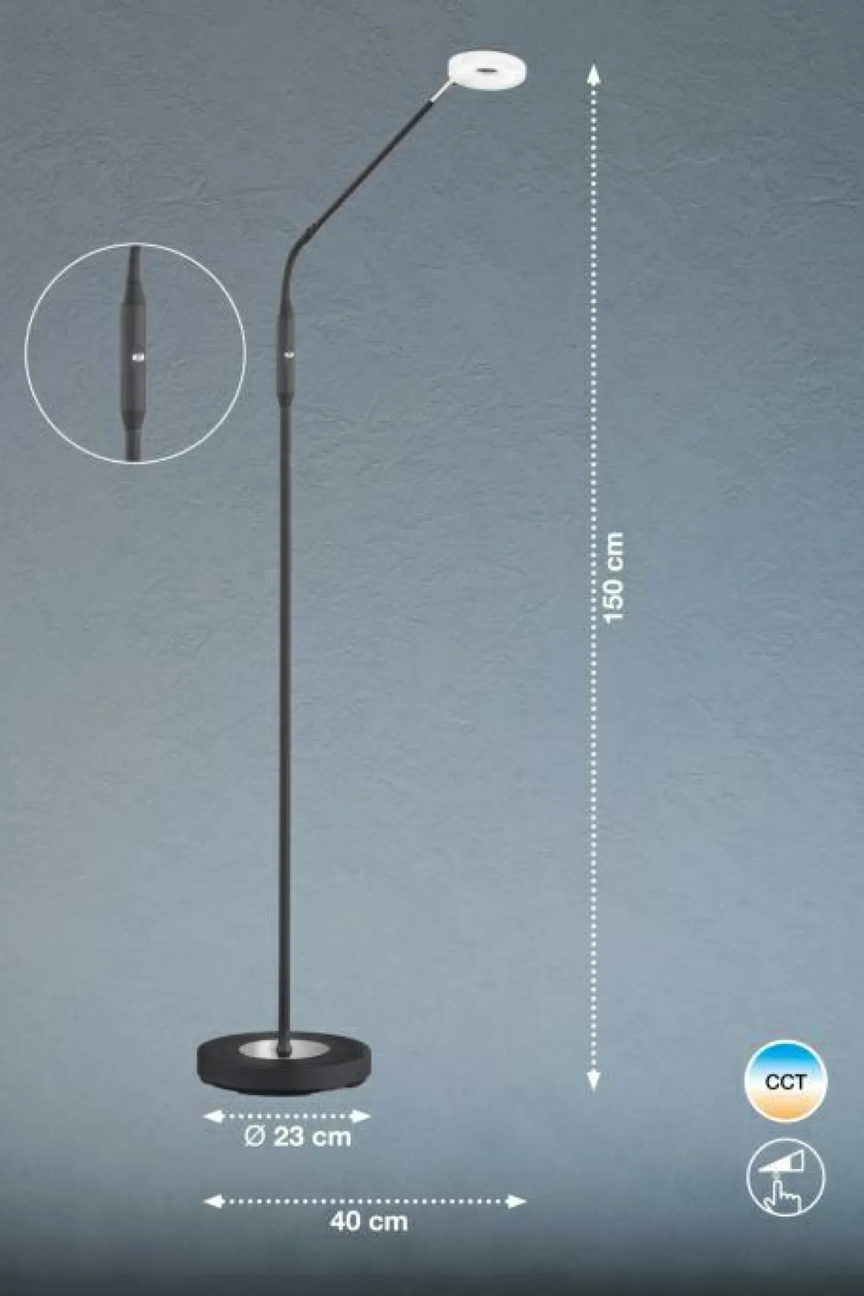 Diese Stehlampe steht für Lichtdesigns in seiner attraktivsten Form. Sämtliche Qualitäten und Highlights, die die Marke FISCHER & HONSEL ausmachen, kommen in der Leuchte zusammen. Diese Lampe begeistert durch ihr stilsicheres Aussehen, welches sich jedem Ambiente problemlos anpasst. Die Stehlampe lässt sich für eine individuelle Regulierung der Helligkeit nach Ihren Wünschen dimmen und vervollständigt Ihr persönliches Gestaltungskonzept dank des modernen Designs. Die hervorragende Stehlampe stellt eine harmonische Beleuchtung sowie eine angenehme Atmosphäre her und ist ein Gewinn für jeden Wohnraum. Die Lampe ist mit einer FEST-Fassung ausgestattet. Sie ist 150 Zentimeter hoch und punktet mit der Qualität des verwendeten Metalls. Die Stehlampe eignet sich ausgezeichnet, um das Aussehen eines Bereichs stimmig zu ergänzen. Diese Leuchte verbindet angenehme Lichtqualität und ansprechendes Design.