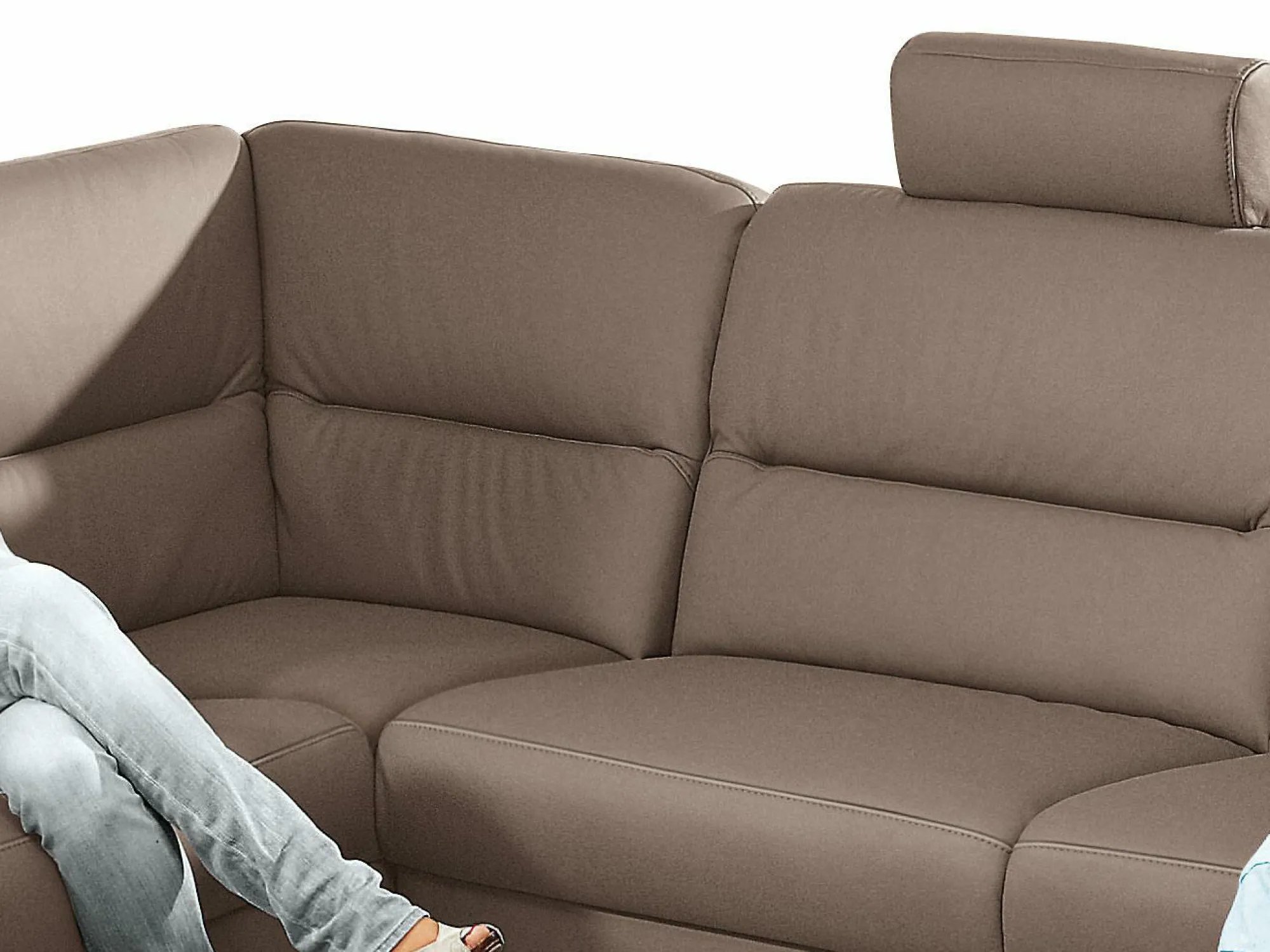 Die Sitzhöhe des Ecksofas misst ca. 45 cm, alle Sitze mit in der mittleren Sitzhärte Superlastic med ausgestattet.
