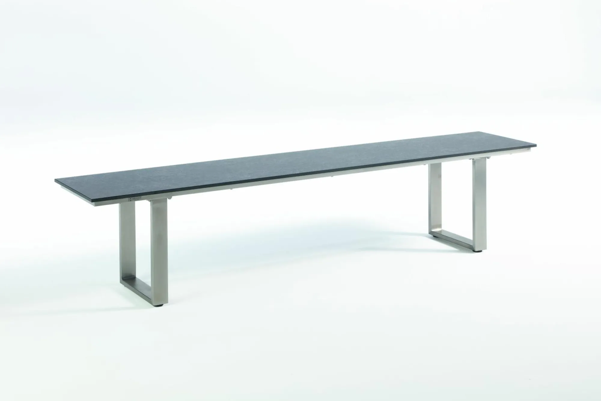 · Bank NEMO Sitzfläche HPL Beton, Gestell Profilkufe Edelstahl gebürstet.