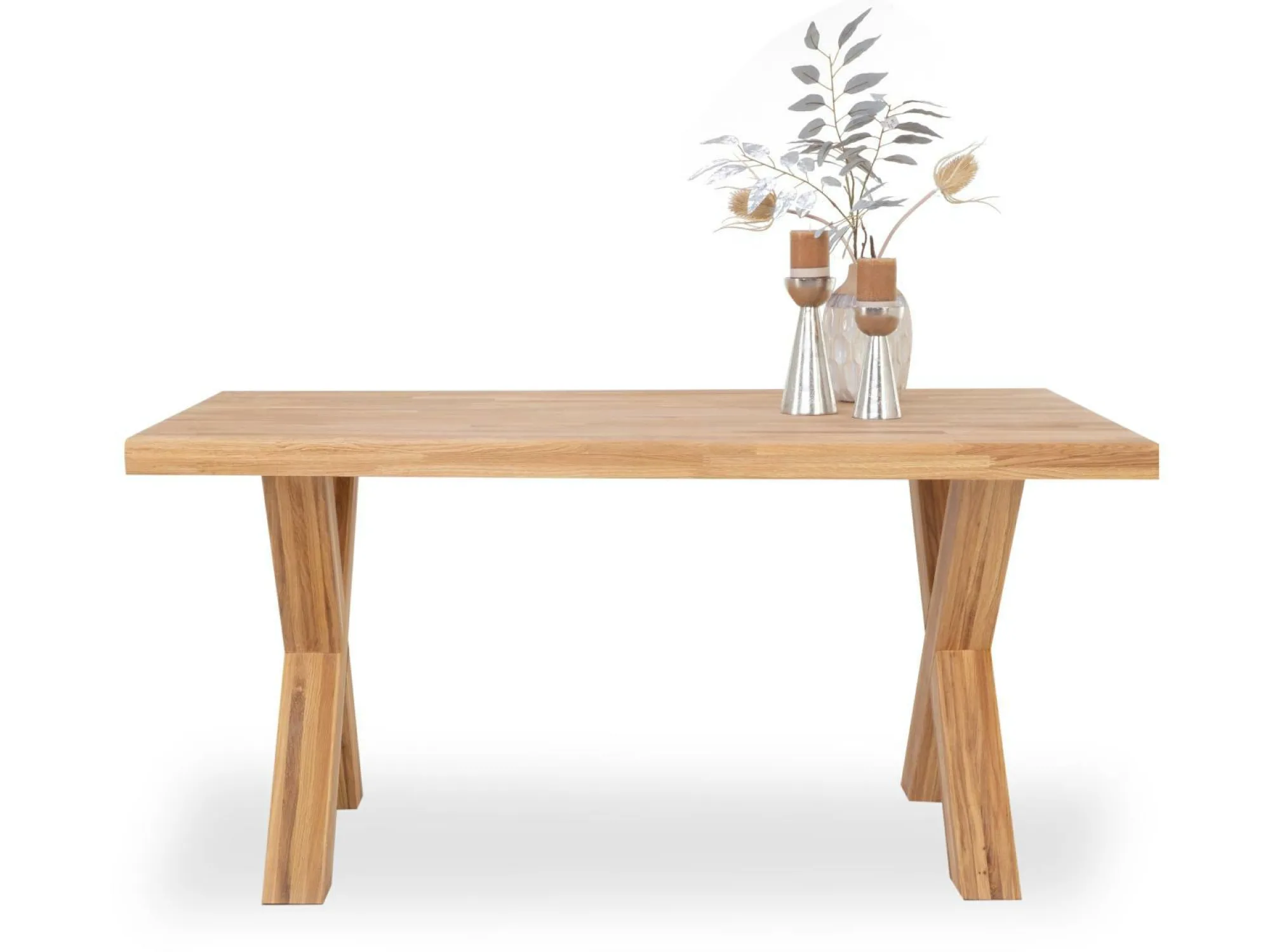 Schaffen Sie den idealen Ort für viele gemeinsame Mahlzeiten mit dem Esstisch Siga aus dem Hause vito. Dieser Tisch besteht dabei aus massiver Eiche und passt durch seine natürliche Ausführung in viele Einrichtungsstile. Zudem zeigt sich der Tisch äu0ßerst robust und bietet durch das X-Fußgestell einen stabilen Stand.