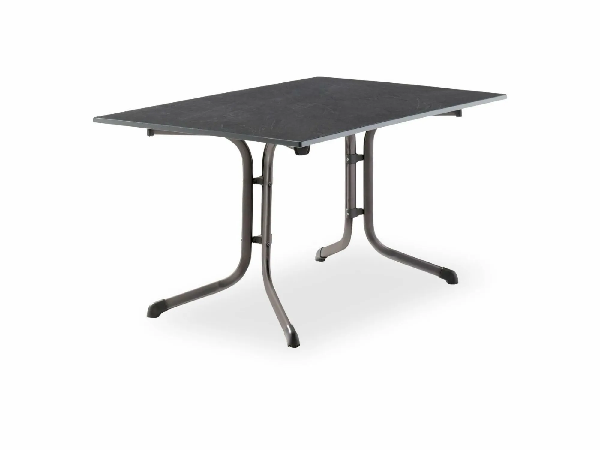 · Der Boulevard-Klapptisch 3170-55 hat ein eisengraues Gestell aus polyesterbeschichtetem Profil-Stahlrohr mit einer Rohrstärke von 40 x 32 mm und eine formschöne vivodur®-Schieferdekorplatte in anthrazit. Der Tisch hat eine Größe von 140x90cm. Durch die Polyesterbeschichtung wird das Gestell unempfindlich gegen Witterungseinflüsse. Die Höhe des Tisches beträgt ca. 73 cm. Damit der Tisch auch auf unebenen Flächen einen festen Stand hat, wurde er mit einem Höhenausgleich ausgestattet. Durch seine Klappfunktion ist der Tisch sehr einfach in der Handhabung. Ein weiterer Pluspunkt für diesen Artikel ist, dass er montagefrei angeliefert wird. So können Sie den Tisch sofort nach Erhalt problemlos in Gebrauch nehmen. Der Tisch lässt sich ideal mit Möbeln aus dem SIEGER-Sortiment kombinieren. Zudem profitieren Sie bei diesem Artikel von der jahrzehntelangen Erfahrung die SIEGER bei der Herstellung von Gartenmöbeln vorweisen kann.
