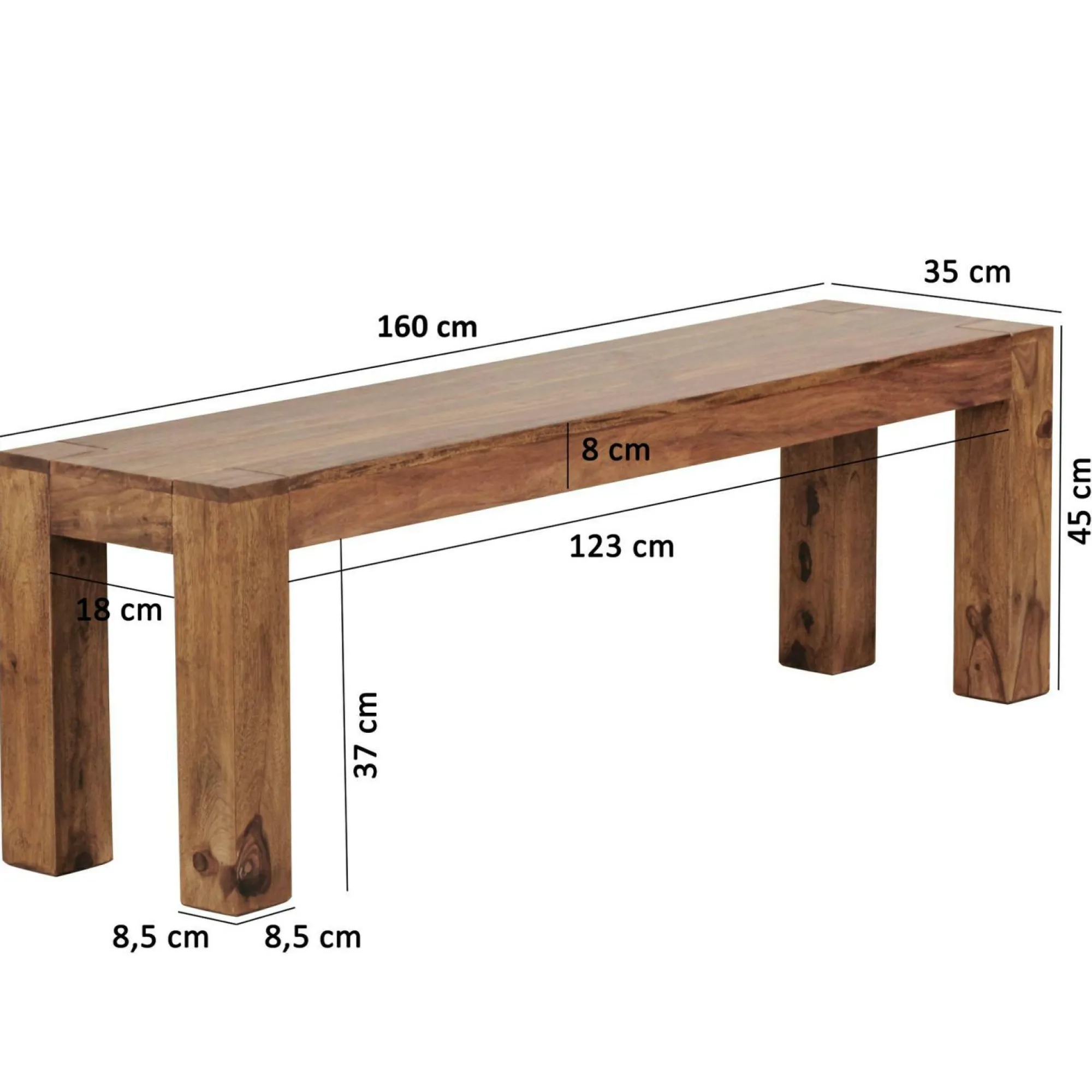 Diese Bank ist für Ihre vier Wände genau das Richtige. Kombinieren Sie das Modell MUMBAI dank seiner Farbausführung mit unterschiedlichsten weiteren Möbeln und erfreuen Sie sich an erstklassigen Ergebnissen. Die Sitzbank kann auch optisch durch ihr modernes Design begeistern, vermag mit der Qualität des verwendeten Holzes zu überzeugen und hat die Farbe Braun. Sie bringt ein Mehr an Gemütlichkeit in Ihre Einrichtung und kreiert so ein bequemes Highlight für Ihr Interieur. Das Modell MUMBAI weist eine Länge von 160 Zentimetern, eine Gesamtbreite von 35 Zentimetern und eine Höhe von 45 Zentimetern auf. Mit seinem stimmigen Look punktet das formschön gestaltete Sitzmöbel und sorgt für Aufsehen in Ihrer Inneneinrichtung. Freuen Sie sich auf Ihre neue Bank.