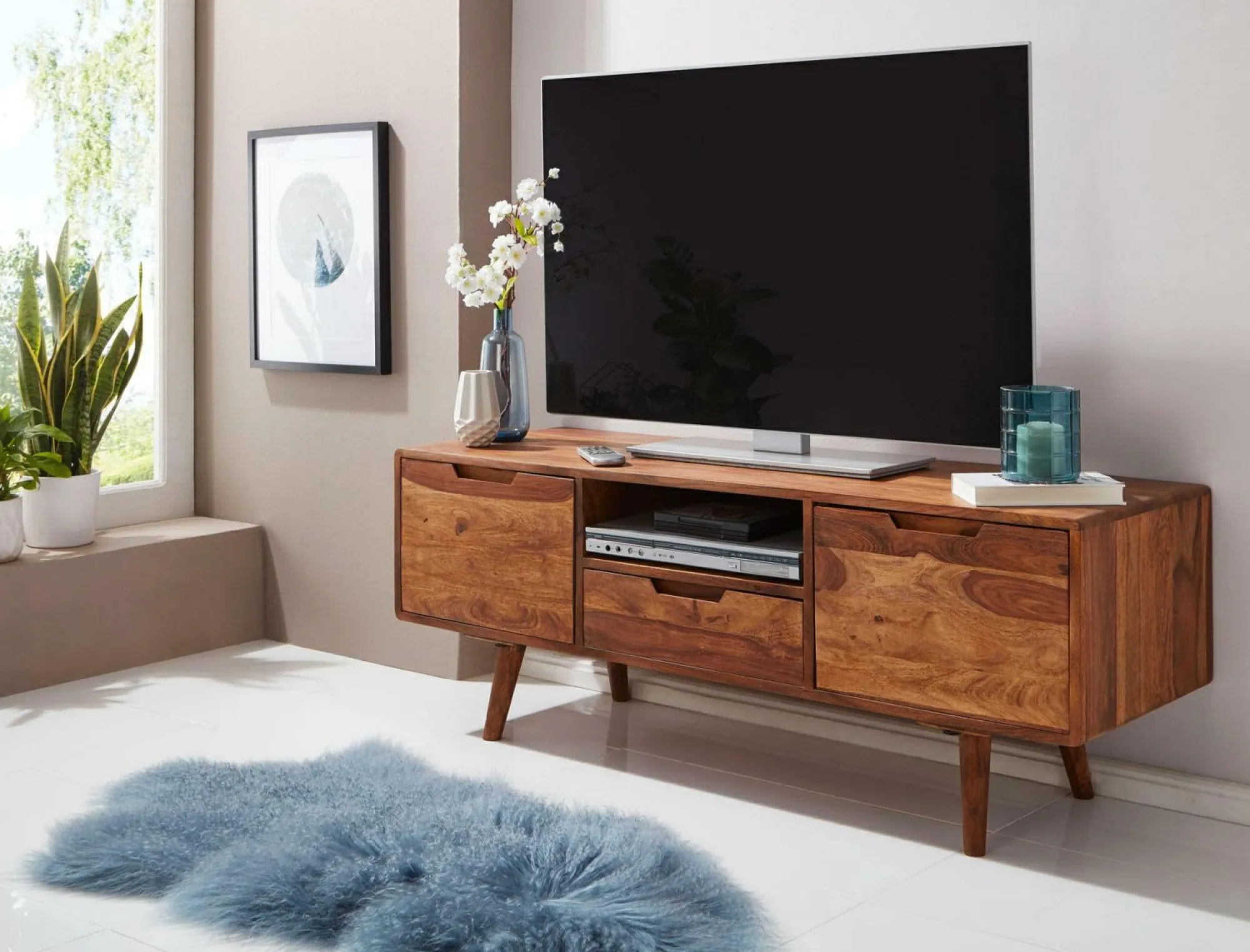 · Massiv – Bringen Sie ein Stück Natur in Ihr Wohnzimmer! Der TV-Schrank versprüht einen Zuhause.