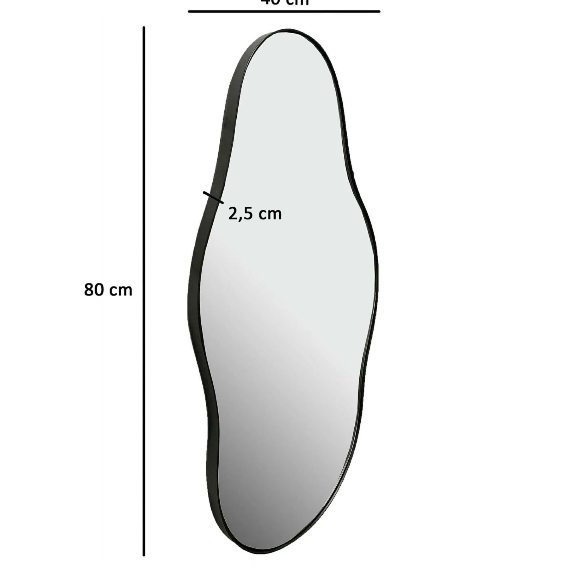 · Abmessungen – Breite: 40 cm // Höhe: 80 cm // Tiefe: 2,5 cm // Stärke der Spiegelfläche: 6 mm.