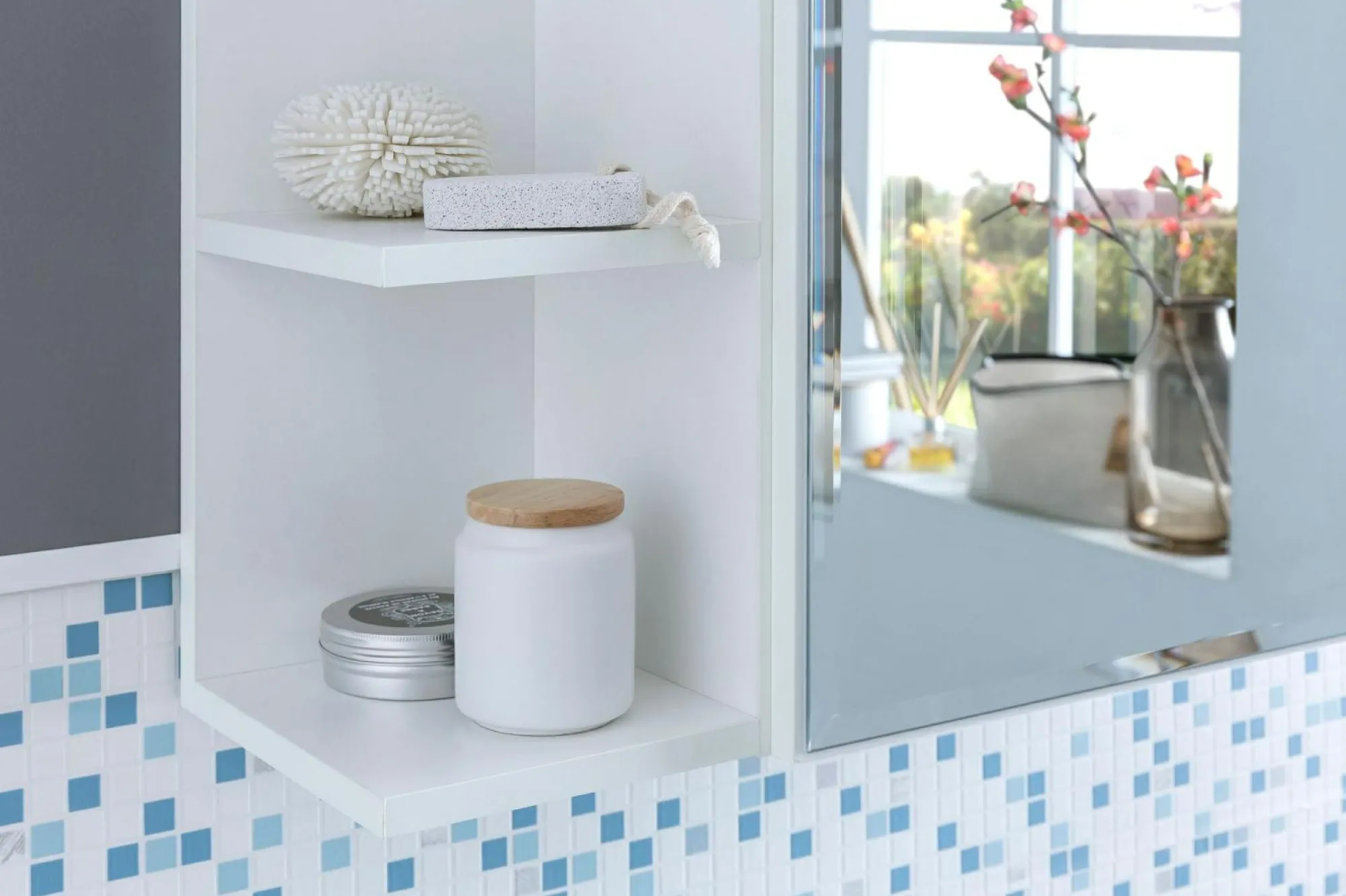 · Morgencheck – Der praktische Badezimmerspiegelschrank hält morgens Haarbürste, Zahnbürste und griffbereit.
