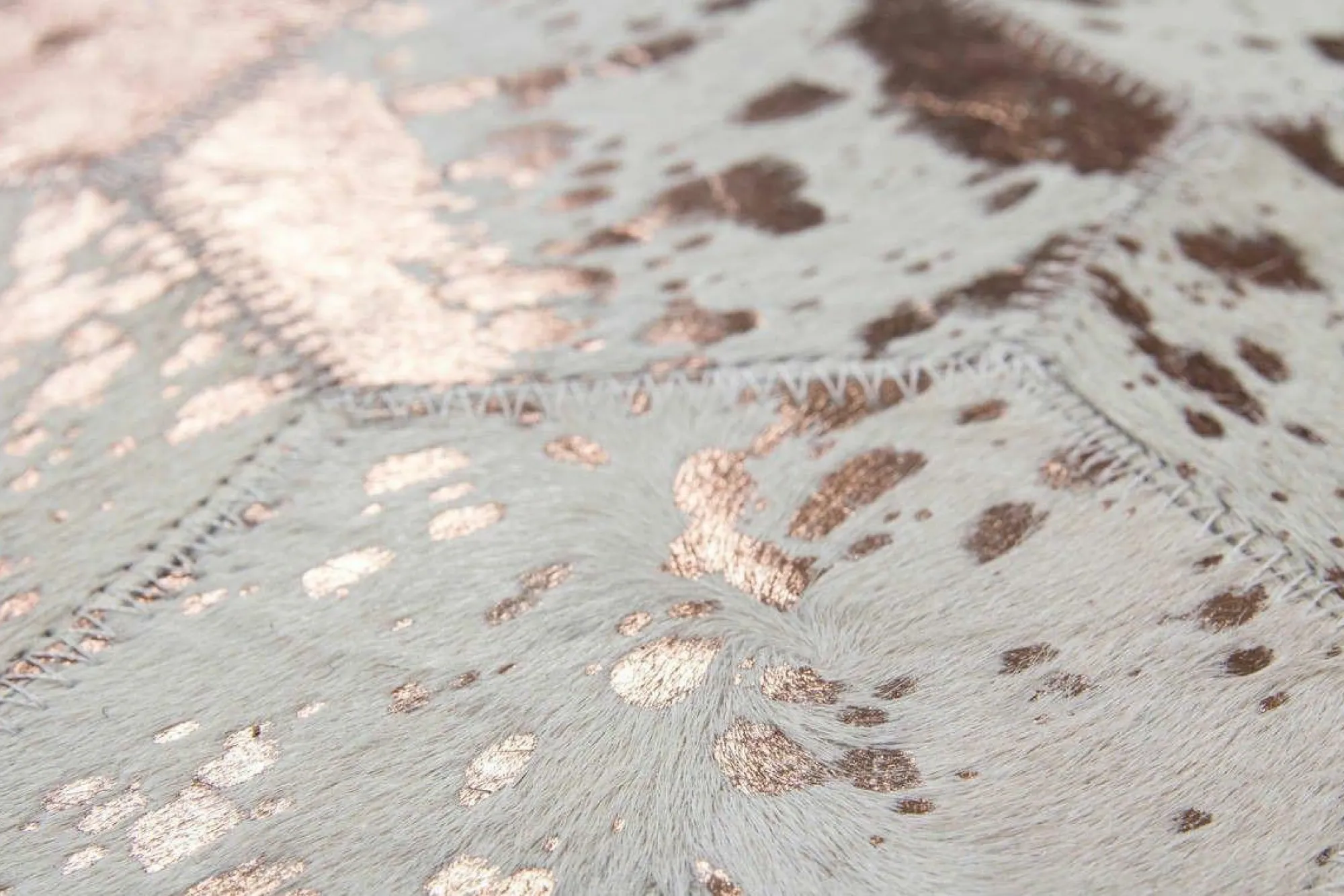 · Der wunderschöne Lederteppich mit eingearbeiteten Applikationen aus metallischer Folie rundet jeden edlen Einrichtungsstil gekonnt ab. Der hochwertige Edel-Teppich aus 100 % Leder überträgt einen individuellen Touch auf seine Umgebung und erzeugt ein ganz besonderes Flair. Von Hand gefertigt ist jeder einzelne Lederteppich ein Unikat. Die Verwendung von edlen Naturmaterialien und die hochwertige Verarbeitung sorgen für ein dynamisches Aussehen und machen jeden Teppich einzigartig, denn bei Naturprodukten kann es in Form, Farbe und Muster zu Abweichungen von bis zu 30 % kommen. Das natürliche Fell kann nach einiger Zeit und bei hoher Beanspruchung gegebenenfalls an Haaren verlieren. Ebenso könnte sich die Metallicfolie unter Umständen ablösen. Dies ist dem Naturprodukt und der Beschaffenheit des Fells geschuldet und kein Produktionsfehler.Setzen Sie ein Statement mit diesem Lederteppich und machen Sie ihn zum Blickfang in Ihren vier Wänden. Er eignet sich für alle Räumlichkeiten – ob Wohnzimmer, Schlafzimmer, Diele oder Esszimmer. Das moderne wabenförmige Muster verleiht dem Produkt eine ganz besondere Note und kommt in Kombination mit verschiedenen Möbeln gut zur Geltung. verschiedenen Naturfaser-Teppiche fangen Fusselwolken ein und sind daher besonders gut für Allergiker geeignet, da sie gleich abgesaugt werden können. Der extra bequeme Lederteppich ist ein Alleskönner, der sowohl durch seine Optik als auch durch seine Haptik