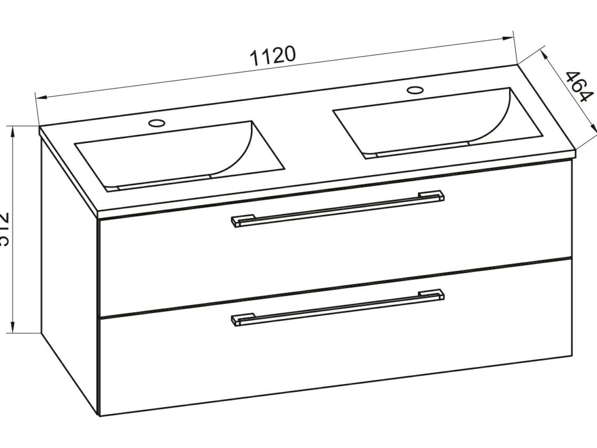 · 1x Unterschrank mit zwei Schubladen Maße ca. H. 51 x B. 112 x T. 46 cm Korpus mit robuster und unempfindlicher Melamin-Beschichtung Zwei große Schubladen mit langlebigen Metallauszügen