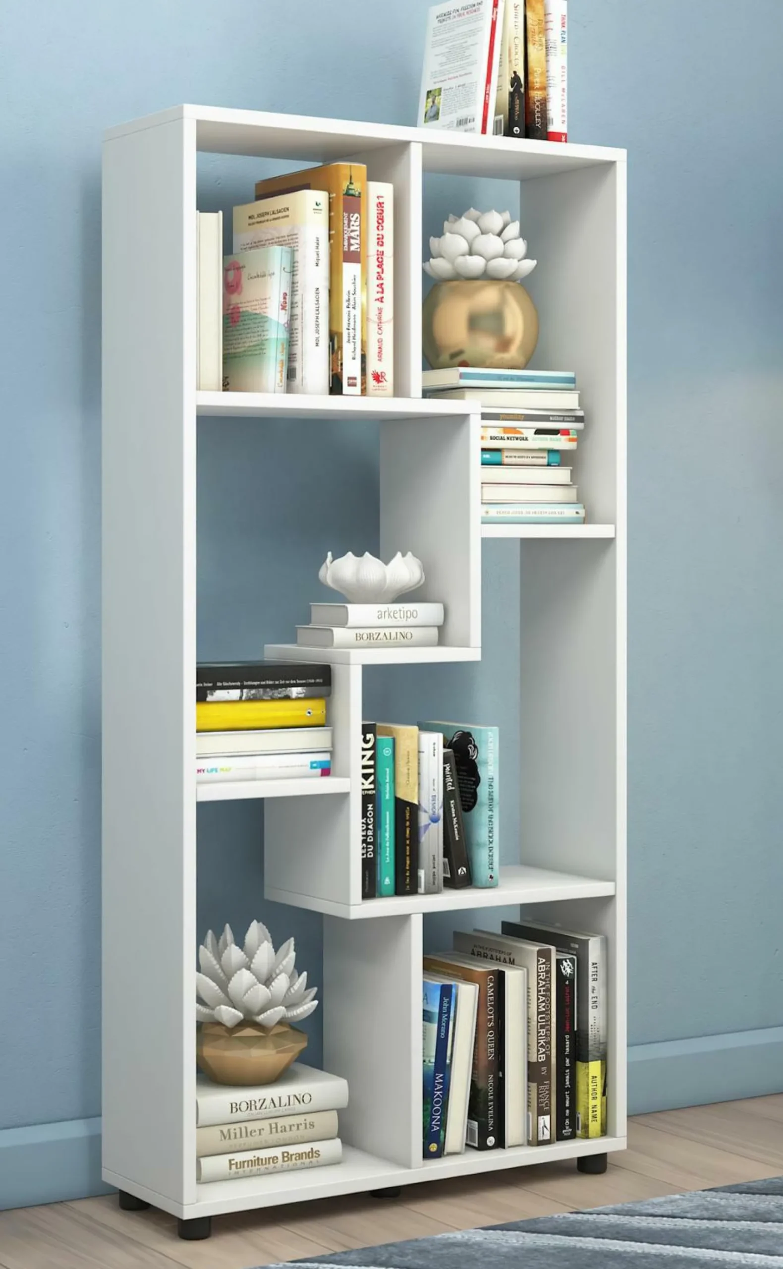 · Der Korpus besteht aus einer Holzstruktur-Nachbildung. Das Standregal eignet sich auch perfekt als Raumteiler für jeden Wohnbereich und wirkt besonders durch die stylische Fachboden-Anordnung.