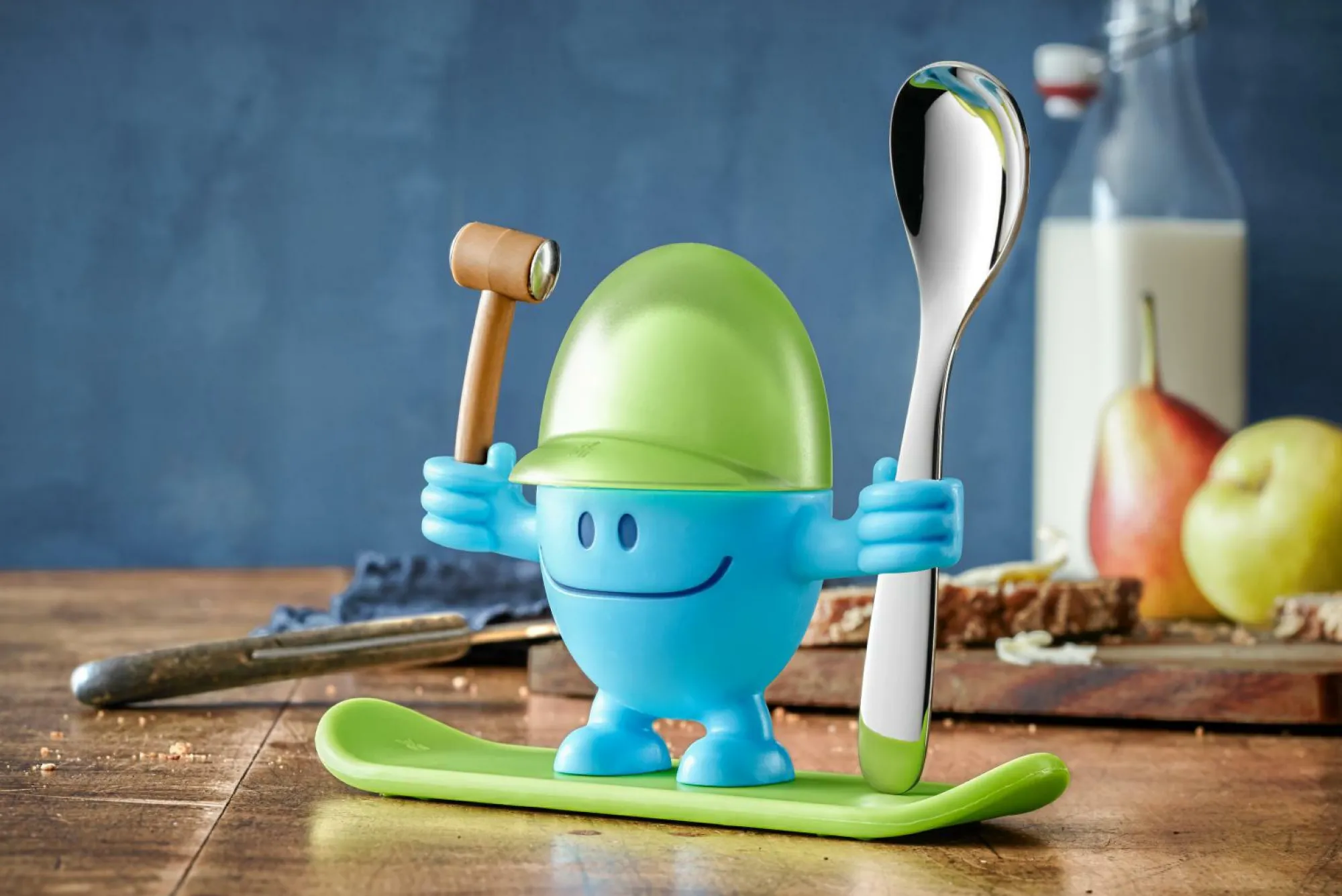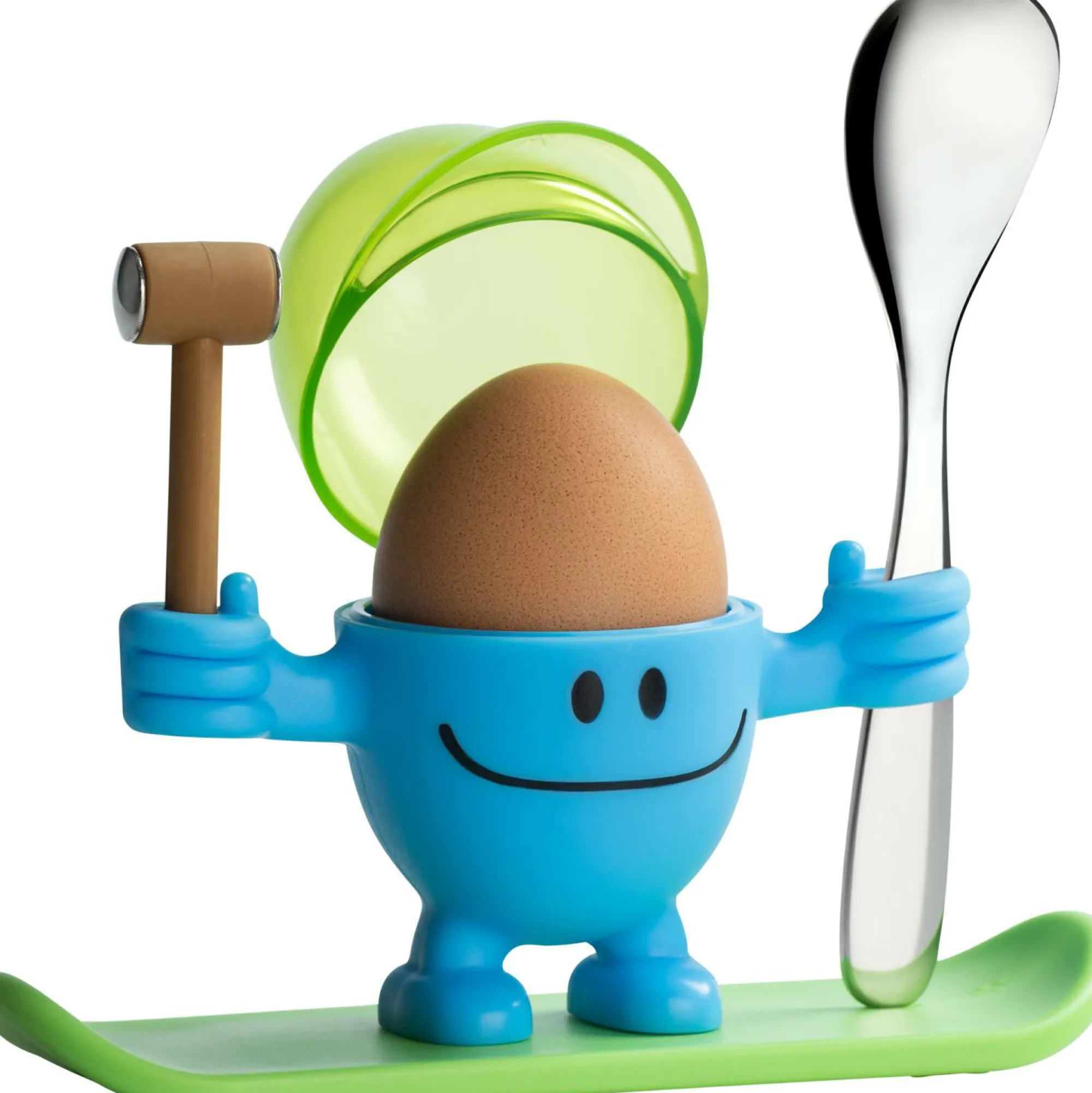 Der praktische Eierbecher Mc Egg blau von WMF ist ein perfekter Begleiter für den Start in Tag und macht direkt gute Laune. Aus hochwertigen Kunststoff gefertigt, überzeugt der süße Eierbecher mit seiner Qualität. Durch den zugehörigen Löffel aus Cromargan und der Kappe zum Sammeln der Eischalen hat der Eierbecher alles was Sie zum Genießen Ihres Frühstückseis brauchen und wird dabei zum Hingucker auf dem gedeckten Tisch.